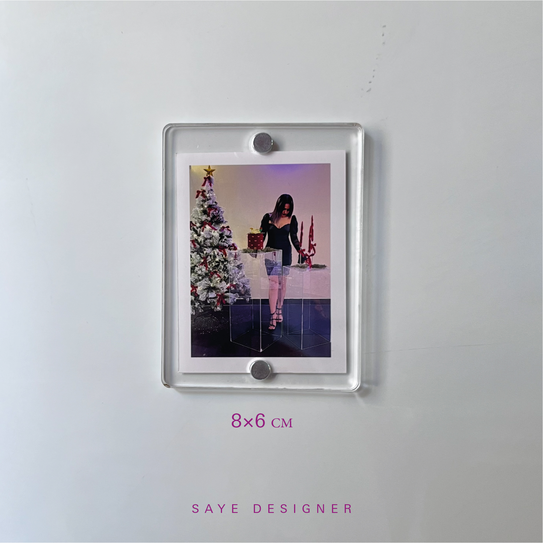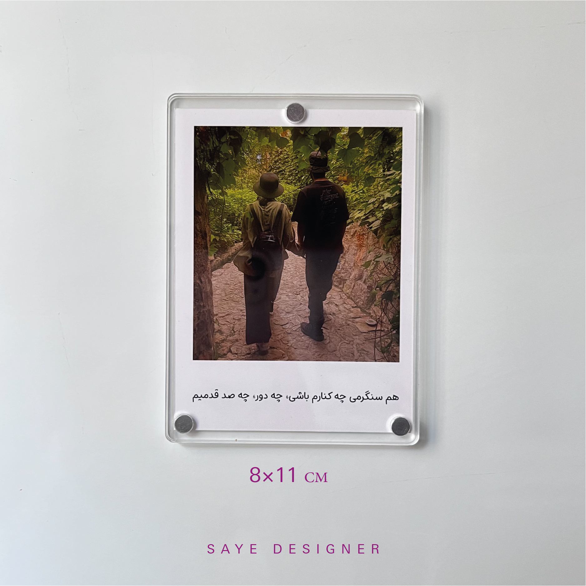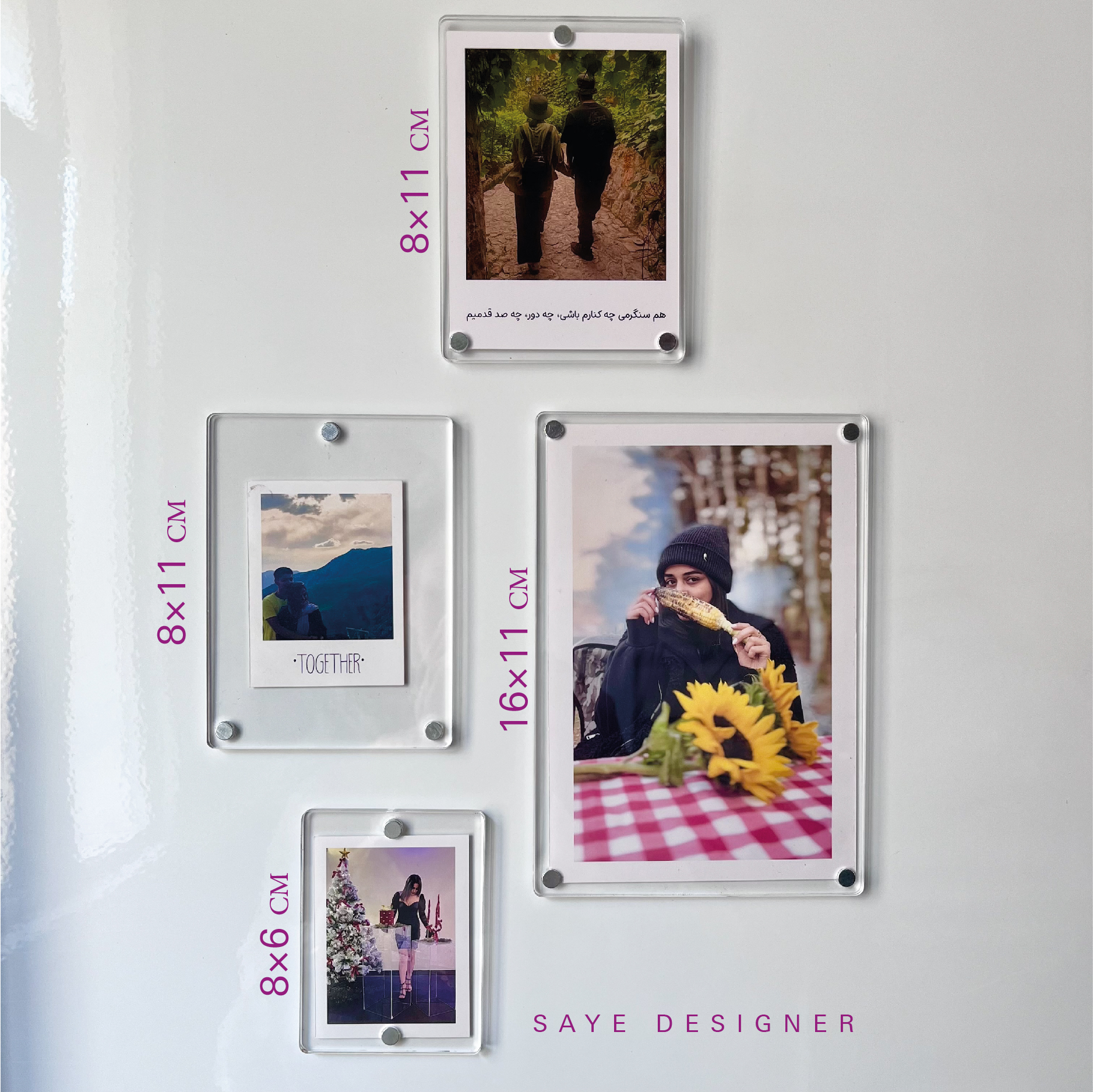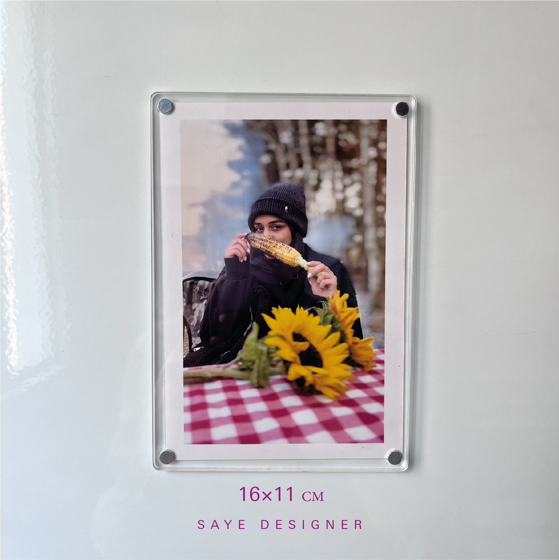 با قاب عکس مگنتی ما، خاطراتتان همیشه جلوی چشم شما هستند. این قاب عکس آهنربایی به‌راحتی به سطح یخچال یا هر سطح فلزی دیگری می‌چسبد و بدون نیاز به میخ یا سوراخ‌کاری، عکس‌های شما را به شکلی زیبا به نمایش می‌گذارد. جنس بدنه‌ی این قاب از پلکسی شفاف مقاوم همراه با آهنربای نرم کیفیت بالا است که از سطح یخچال خط نمی‌اندازد و بدون لغزش ثابت می‌ماند.